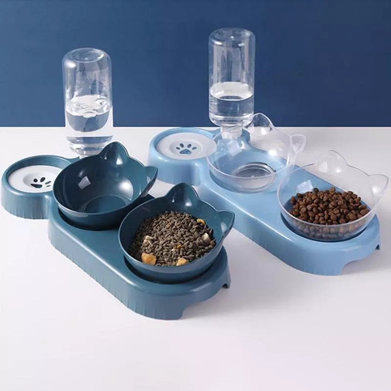 3-in-1 Cat Feeder with Automatic Water Dispenser and Double Bowls