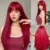 Wine Red Long Straight Synthetic Wig with Bangs – Heat Resistant, Perfect for Cosplay & Daily Wear
